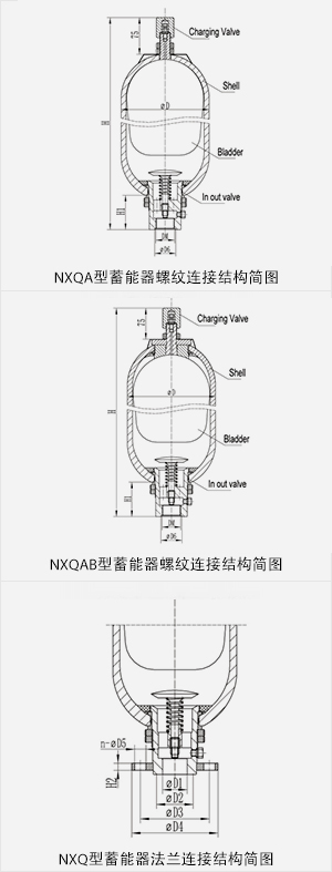 2. 客户如需要加大流量或要求制作顶部修理的其他型式尺寸的蓄能器可订购生产
